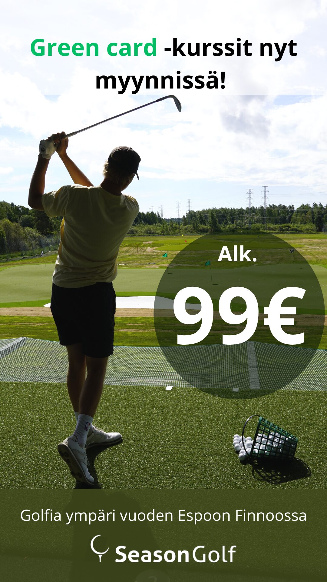 Kurssilainen saa myös 35 € pallosaldoa rangeharjoitteluun sekä 5kpl lähipelikertoja Season Golfin lähipelialueille. Pallosaldon ja lähipelikerrat saa lunastettua Caddiemasterilta. Tämän lisäksi kurssilainen saa hienot edut Espoo Golfiin. Tutustu lisää nettisivuiltamme ja ilmoittaudu mukaan!
